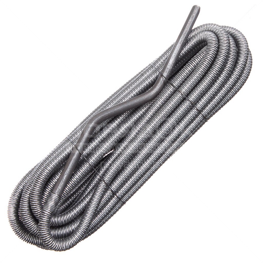 Трос сантехнический диаметром 13,5 мм изготовлен из пружинной проволоки диаметром 1,8 мм и представляет собой полую спираль от 2,5 до 25 метров с ручкой в виде кривого вала на конце.